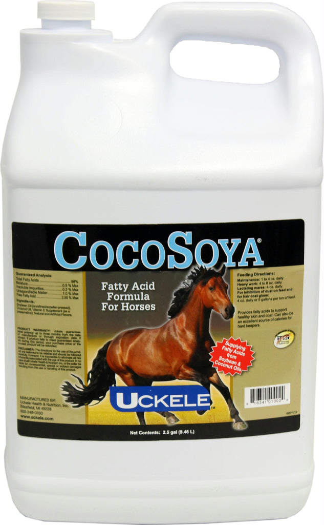 Tasty source of omega 3 omega 6 & omega 9 fatty acids that increases feed palatability.","A healthy affordable alternative to corn oil and molasses.","Supports fat levels in the barrier function of hooves preventing outside moisture from causing damage","Cocosoya is also commonly used to build and maintain weight.